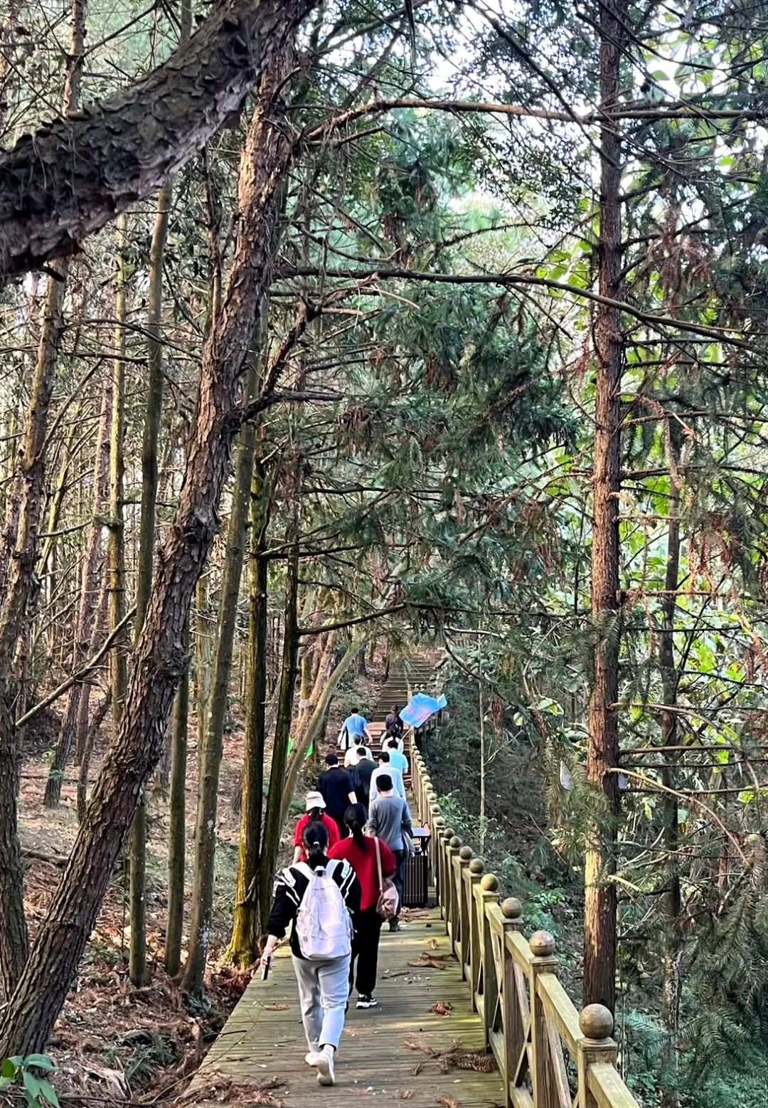 随后,全体人员到园区内开展登山活动。过程中,大家精神饱满,神采飞扬,沿着山道石阶向上攀登,充分发扬团结协作、不畏艰难的优良作风,相互扶持、互相鼓励,满怀热情共同奔赴山顶。