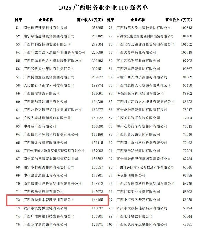 - 喜报!资本管理集团入选2025广西服务业企业100强2025-10-09